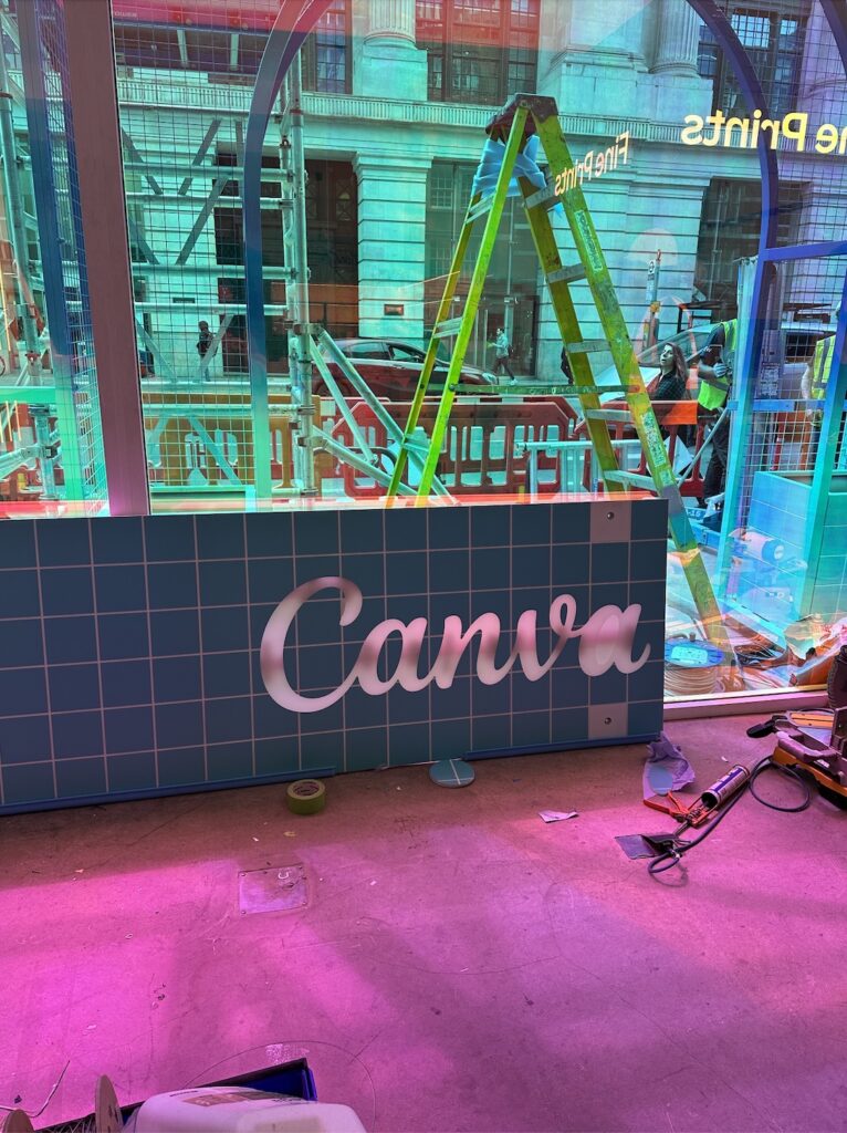 A super fresh, super punchy, pastel-popping job for graphic design platform Canva’s live workshop activation. A total take-over of Hello Love in Bloomsbury, transforming the space into a Canva-come-to-life interior and exterior fit out.