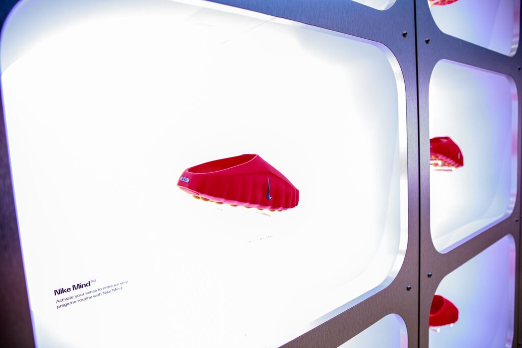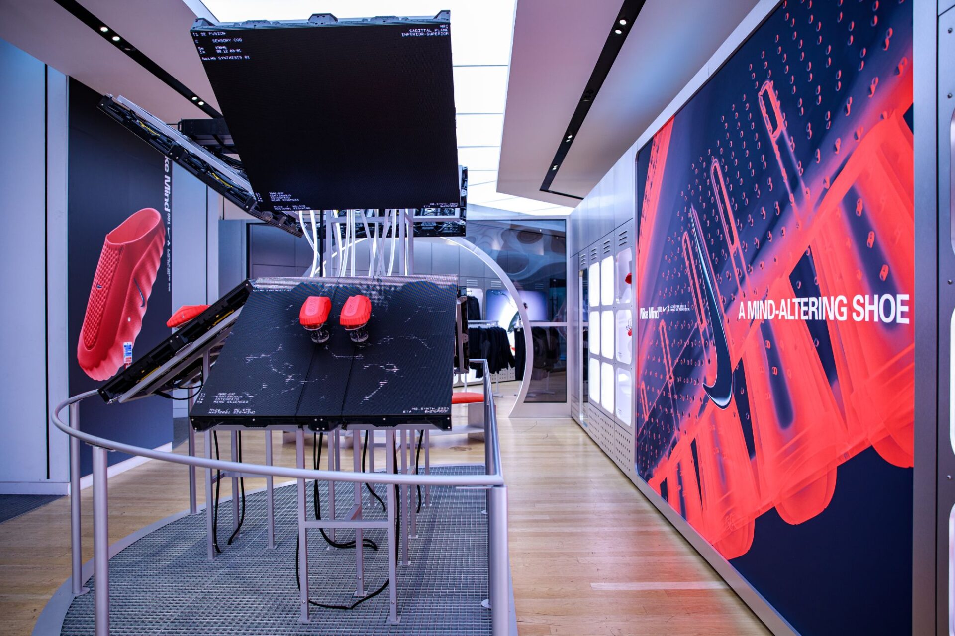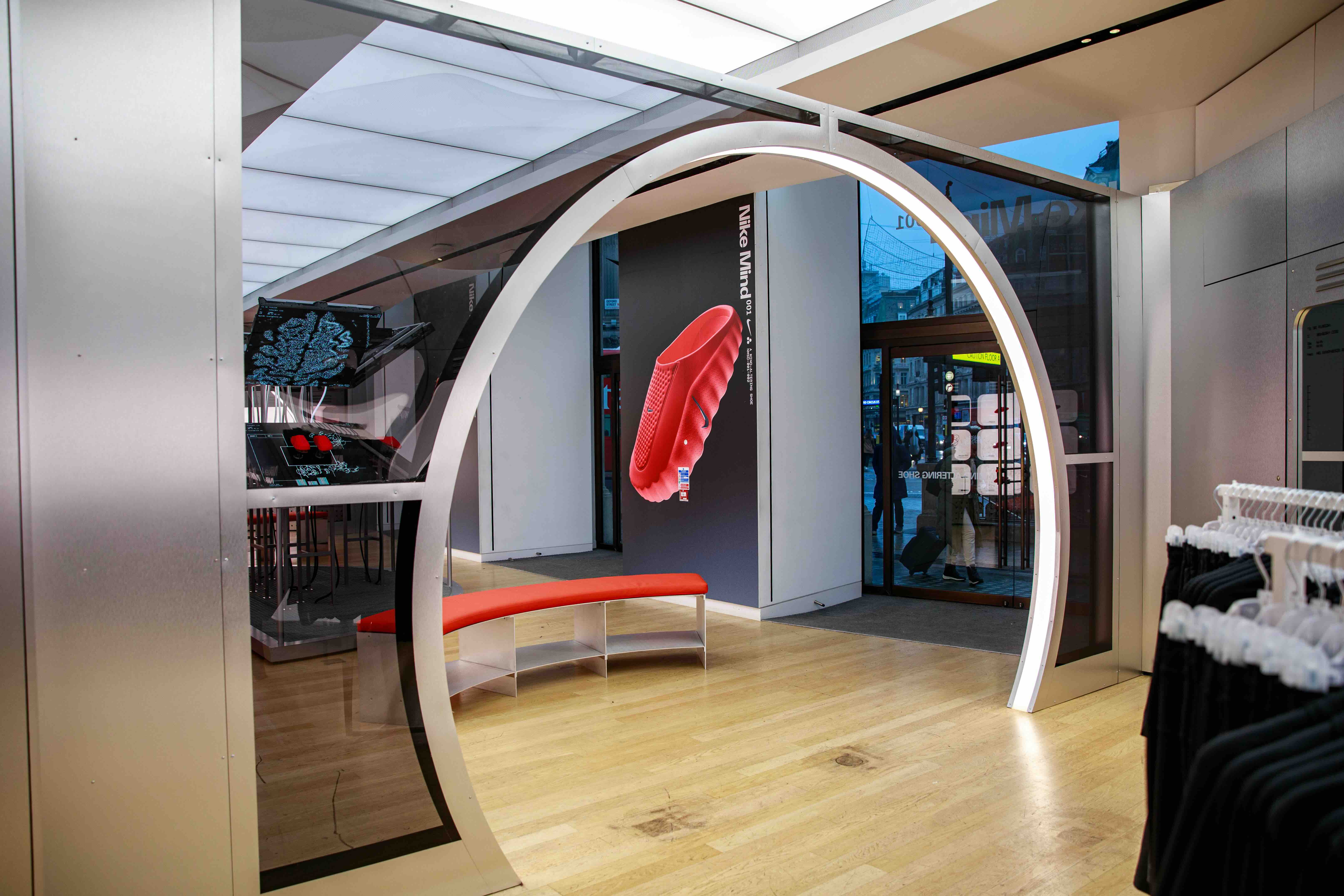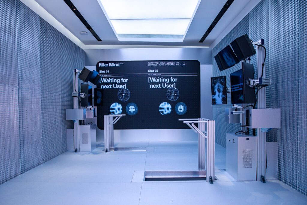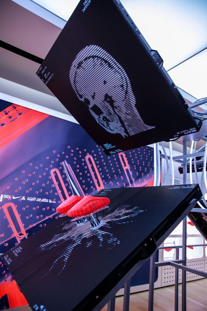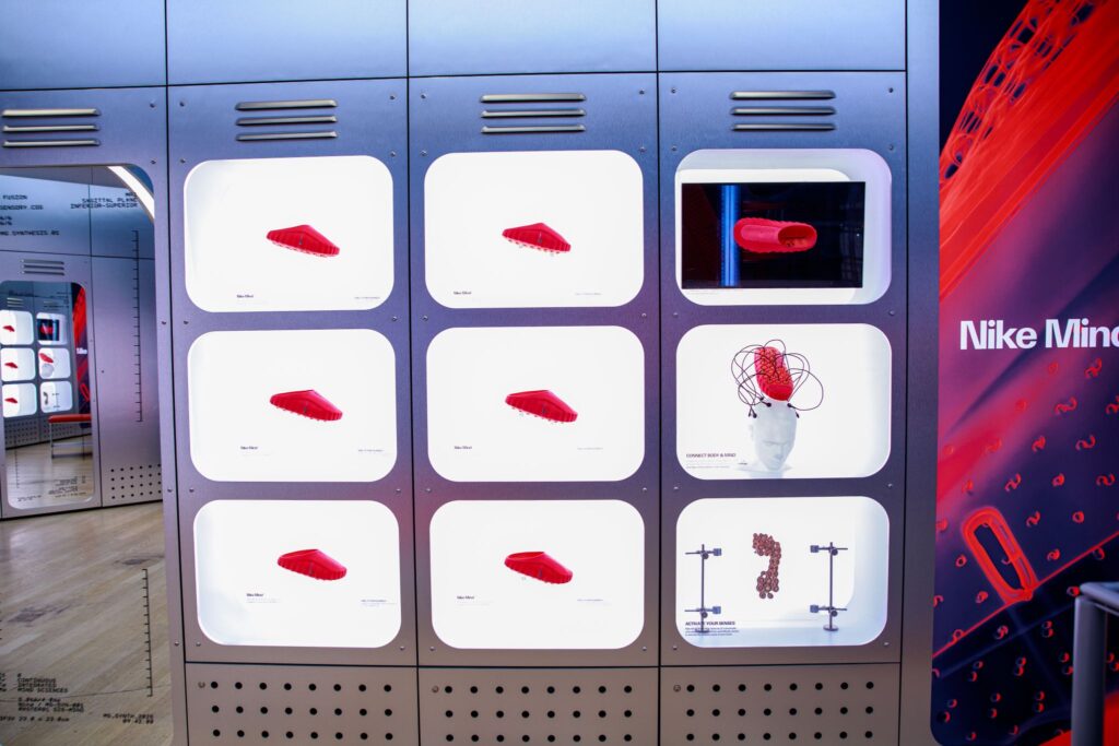 A slick takeover of the ground floor the Nike Oxford St store that demonstrates the science behind the technology of Nike’s neuroscience-powered Mind 001 pre-game enhancing sliders.