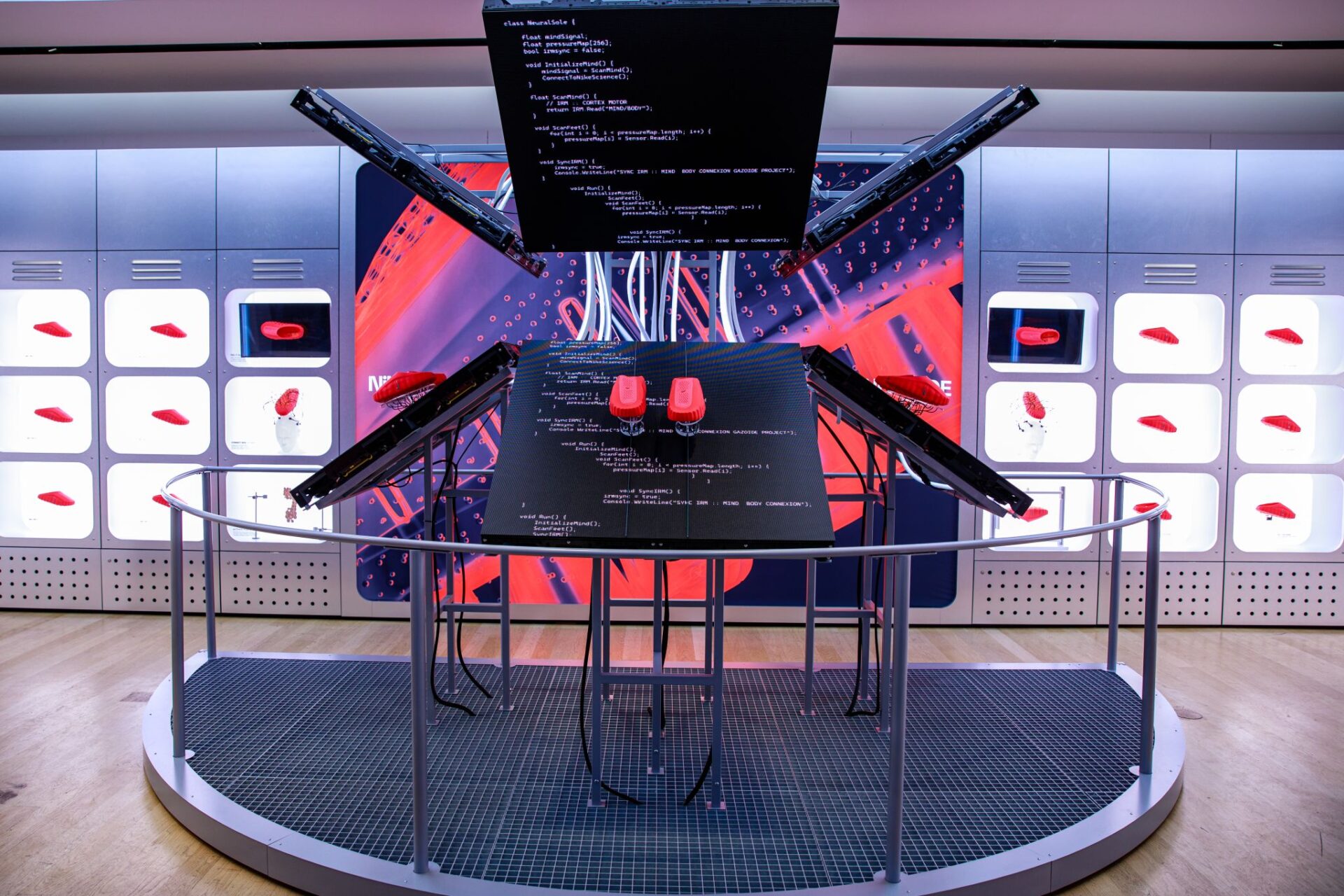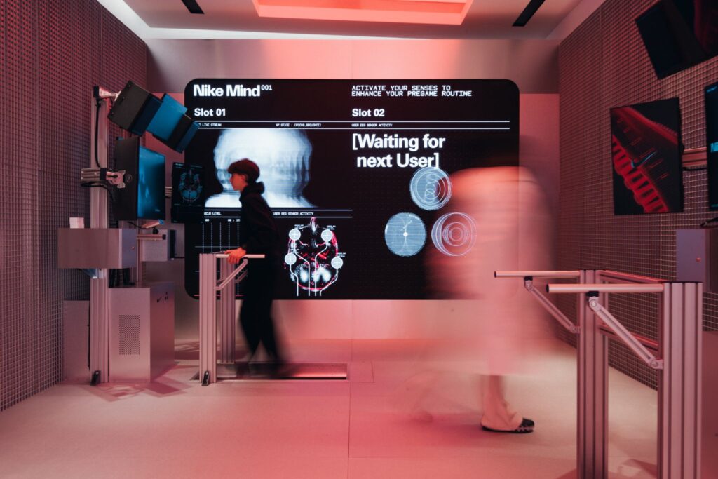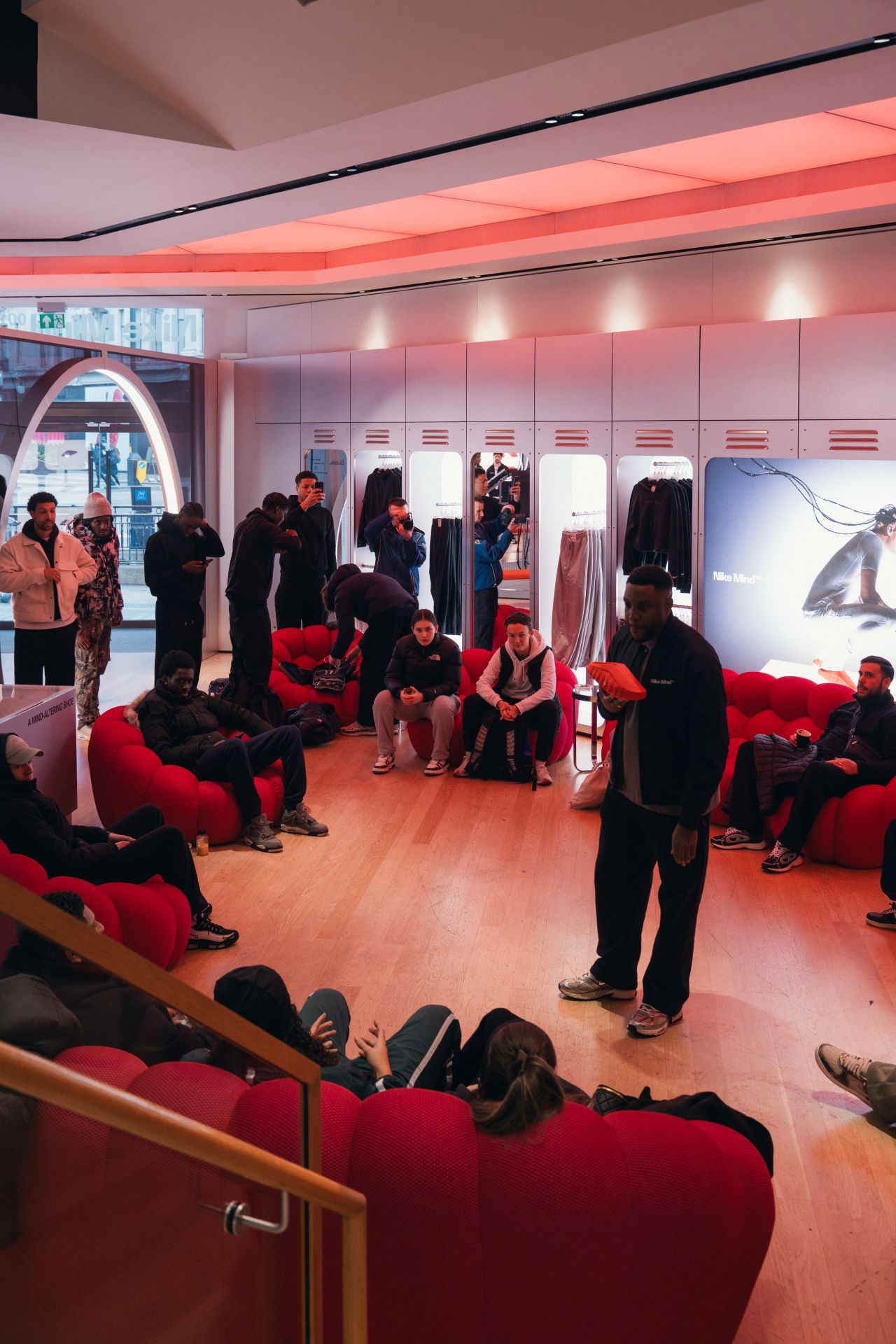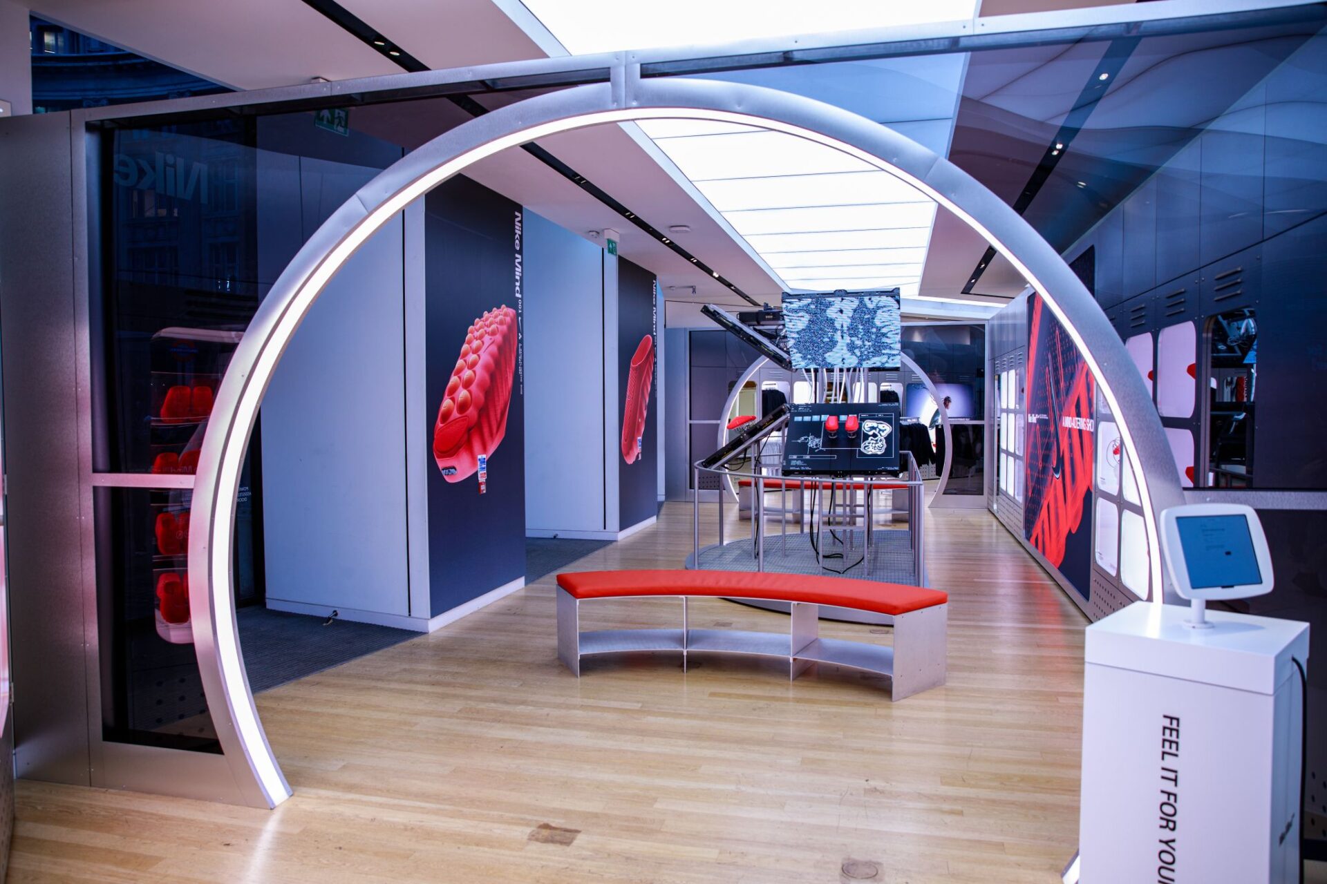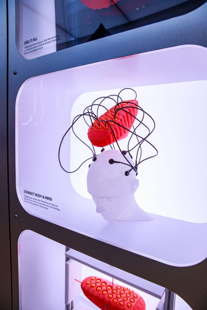 A slick takeover of the ground floor the Nike Oxford St store that demonstrates the science behind the technology of Nike’s neuroscience-powered Mind 001 pre-game enhancing sliders.